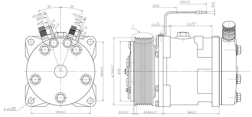 Автомобильный компрессор кондиционера Титан 5H11 PV8 24V вертикальные выходы