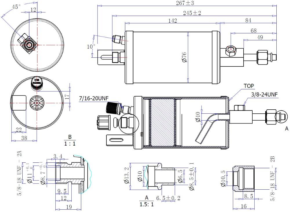 17-2090 Ресивер горизонтальный автомобильного кондиционера Титан 245ммх76мм внутренняя / наружная2х5/8-18UNF O-ring