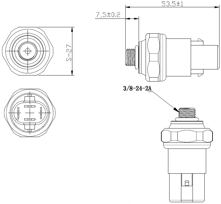 18-1883 Датчик давления Титан влагозащита 3/8-24UNF наружная резьба LP-2 kg/cm2 OFF и MP-17.5 kg/cm2 ON и HP-32 kg/cm2 OFF