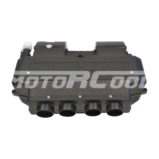 Испарительная установка RC-U06132 холод 24V, 8,5A , алюминиевый сердечник, температура: без термоконтроля,4 выхода диаметром 53мм., Без регулятора скорости воздушного потока, габариты 430*320*170 мм. макс. объём воздуха 390 м³/hr вес 3,7 кг.