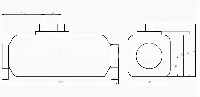 Габаритные размеры: длина - 382 мм, ширина - 138 мм, высота - 150 мм
